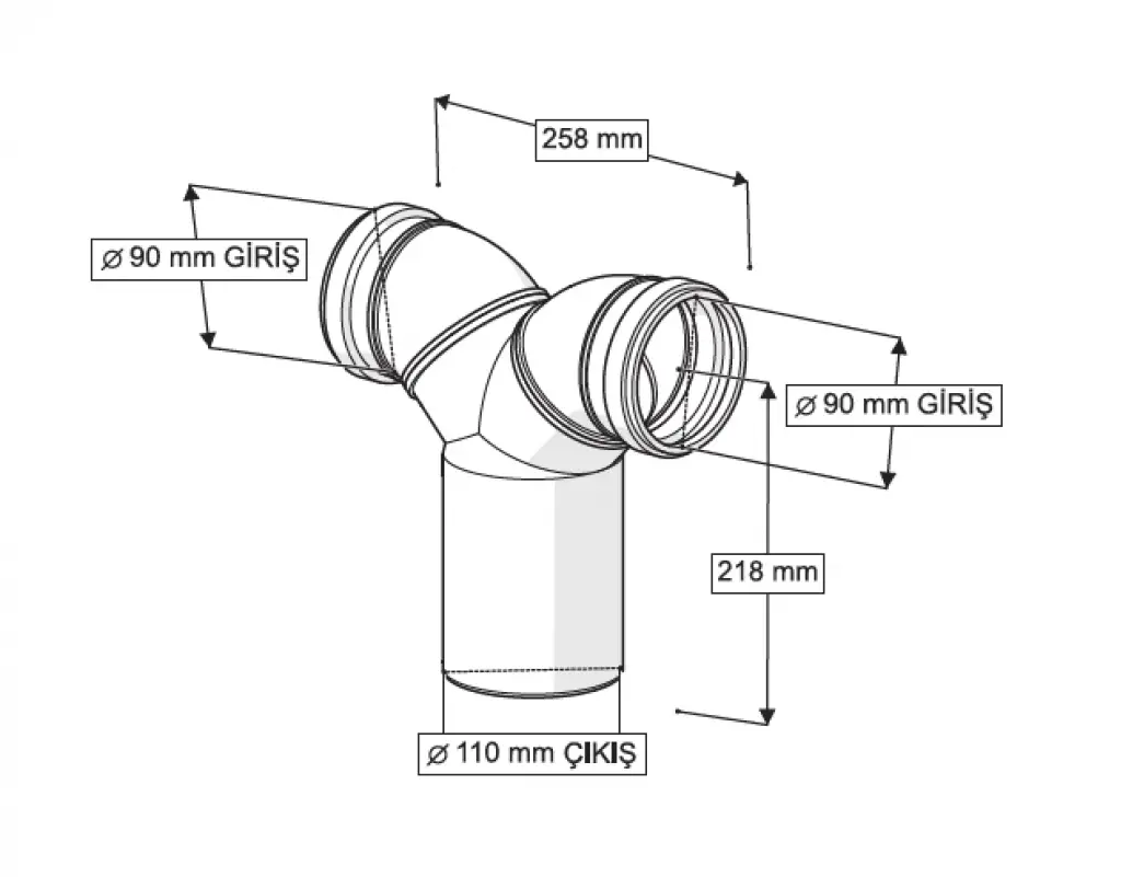 GÖMME REZERVUAR PİS SU ÇATAL DİRSEĞİ (Q90-90-110 X 260 mm)