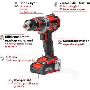 Einhell TE CD 18/50 Lİ-İ BL Darbeli Vidalama 2X2,0 Ah