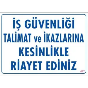 İş Güvenliği Talimat Uyarı Levhası 25x35 KOD:427